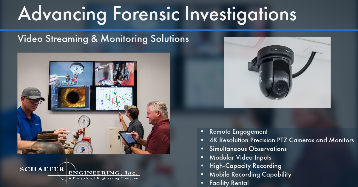 Schaefer Engineering continues to advance forensic technology with the implementation of our industry leading video monitoring, streaming, and recording system purposely designed and built for forensic investigations and evidence examinations.